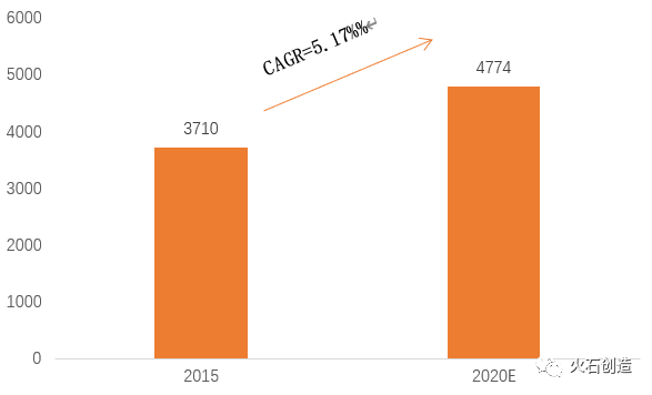 全球医疗器械市场需求持续快速增长,医疗器械行业是当今世界发展最快的行业之一。2015年,全球医疗器械市场规模3710亿美元,到2020年,全球医疗器械市场规模将达到4774亿美元,2015至2020E年年均复合增长率为5.17%。