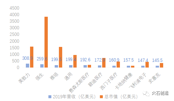 图3 2019年全球营收TOP10的医疗器械企业