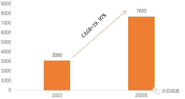 中国医疗器械市场规模高速增长。2015年,中国医疗器械市场规模2556亿元,到2020年,中国医疗器械市场规模将达到7655亿元,2015至2020E年年均复合增长率高达19.97%,远超全球医疗器械市场规模年均复合增速。