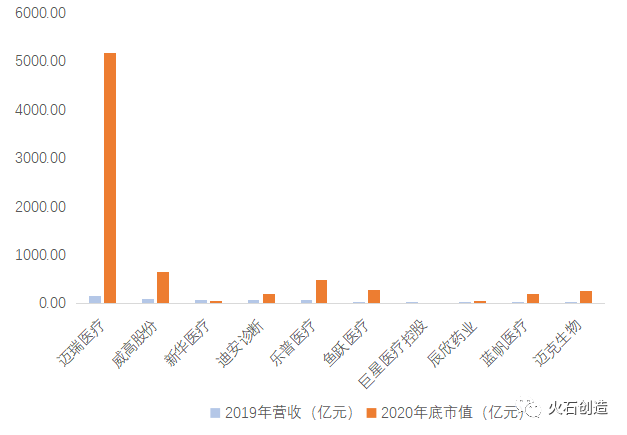 图6 2019年中国上市营收TOP10的医疗器械企业(亿元)