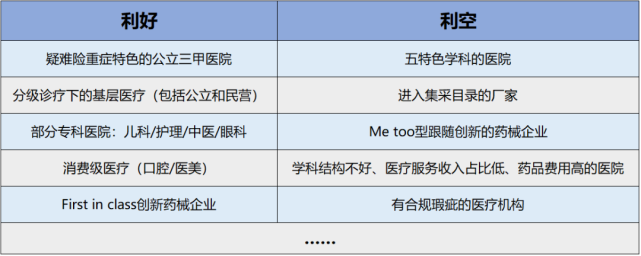 取消药品耗材加成,集中带量采购针对药品耗材“带金销售”,目的是为了净化市场环境、挤干价格水分,减轻人民群众的不合理负担,因此市场销售驱动的公司会受到抑制,疗效不明显的伪创新企业也将难以为继。政府保障基本医疗服务的主体地位使得保基本的药品耗材企业的市场集中度提升,那些真正有创新能力的企业会加大科研投入,争取在未来医疗行业抢占先机,市场会催生众多的科研成果转化企业,有核心创新的项目会被市场追捧,在资本的催化下,将会掀起新一拨兼并收购的浪潮,产业新的生态格局会逐步显现。