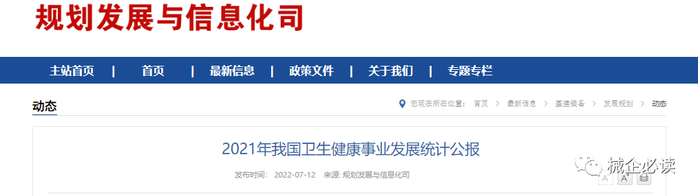 2022年7月12日,国家卫健委规划发展与信息化司发布《2021年我国卫生健康事业发展统计公报》,主要内容如下:
