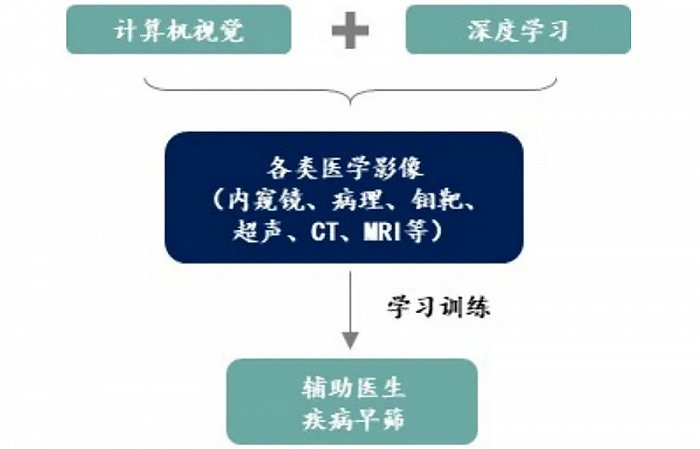 从未来趋势看,AI结合虚拟影像诊断将成为未来技术和应用的爆发点。通过将人工智能(深度学习)和病理大数据算法结合的方法,机器人可以根据医学影像实现特征提取、定量评估、病灶标记、方案推荐等功能,大大减少医生工作量,提高诊断正确率,未来这项技术将运用于更多病种的研究和诊断。