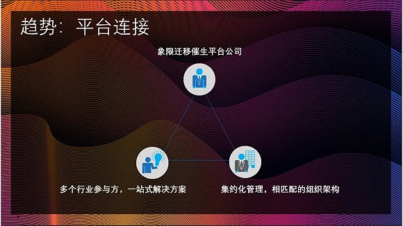 第二点就是在有多个参与方之后,一些平台公司开始提供一站式的解决方案,这里面既包含了产品,也包含了更重要的服务。第三点就是随着各个参与方的参与,产品+服务会很快提升管理效率。